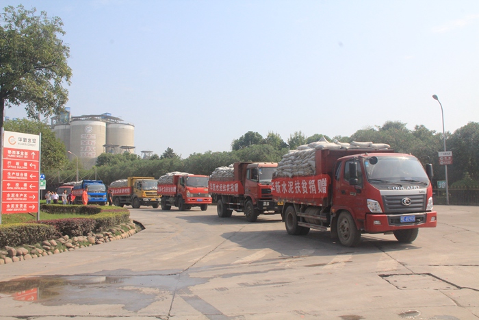 首批捐贈水泥運出廠區(qū)