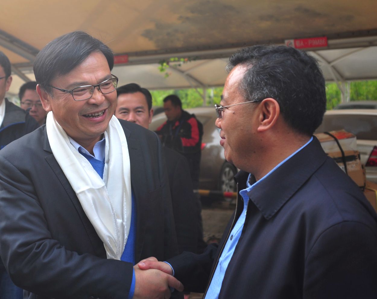 普布頓珠市長向李葉青總裁敬獻(xiàn)哈達(dá)并親切握手