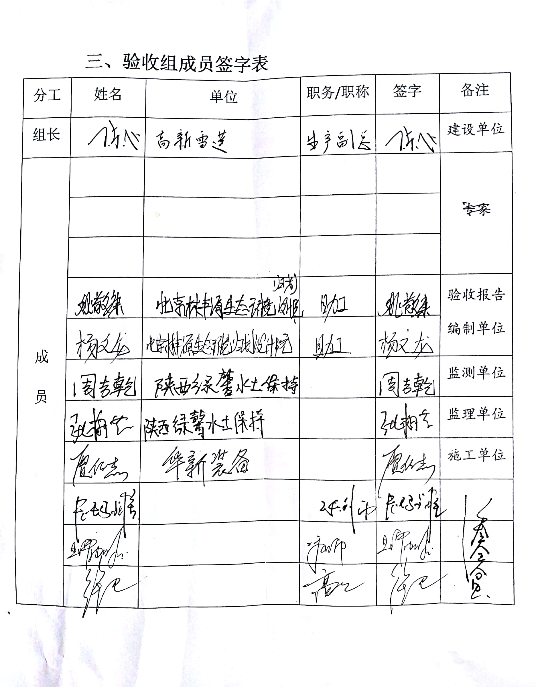 4、驗收組成員簽字