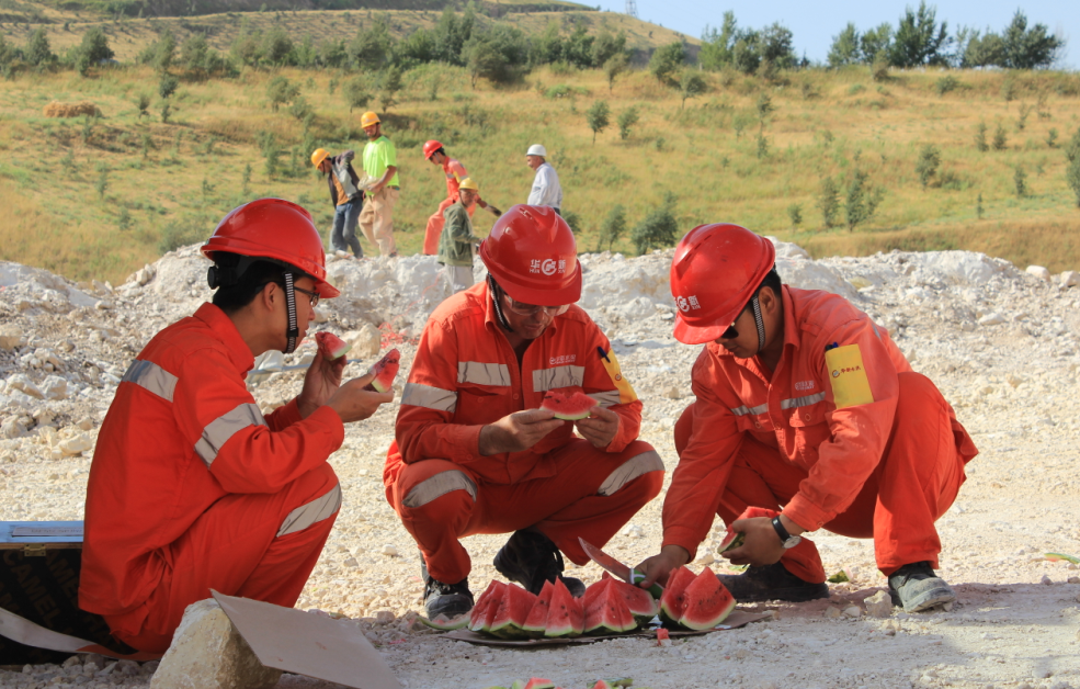 參加礦山中爆破的員工在烈日下“消暑”