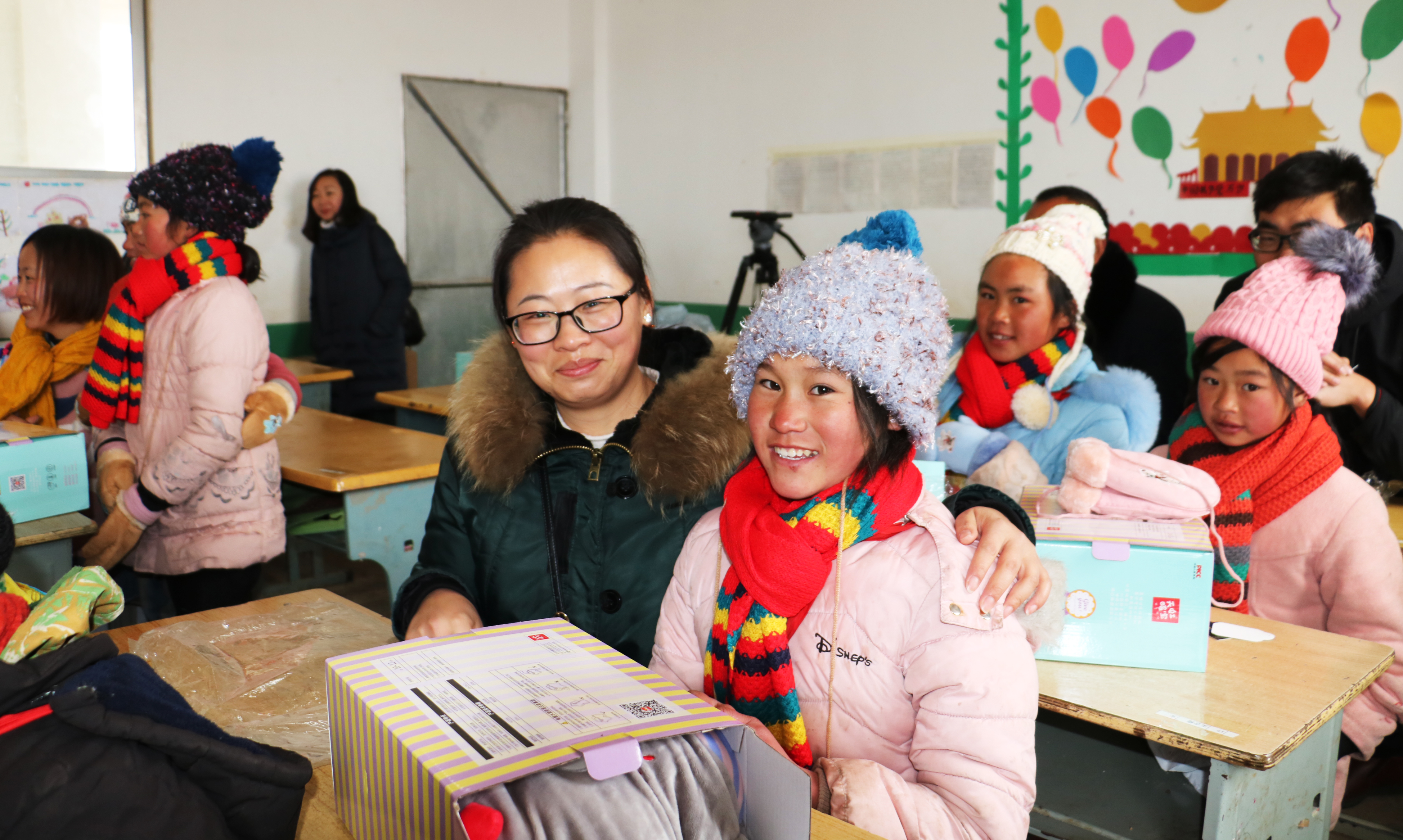 照片在網絡傳開的當日,獲悉情況的華新昭通公司立即采購4萬余元物資,經過一天的準備后,組織28名志愿者在冰雪路上驅車兩個小時,到達該校。志愿者們捐贈了帽子、圍巾、書包、跳繩等保暖用品和學習用品150份,還為全校六個班級教室捐贈了電用油汀(取暖器)六臺,為學生的冬日奉上溫暖。志愿者們將帽子、圍巾給孩子們穿戴上,將書包等用品發(fā)放到他們手中,孩子們的臉上都洋溢著開心溫暖的笑容。